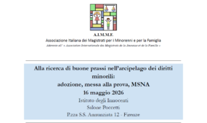 Fondata con l’obiettivo di promuovere la cultura dei diritti dell’infanzia e dell’adolescenza, la nostra associazione riunisce magistrati, avvocati, psicologi e assistenti sociali. Lavoriamo quotidianamente per garantire che ogni minore abbia accesso a una giustizia equa e a misura di bambino, supportando le famiglie nei momenti di difficoltà attraverso formazione, informazione e tutela legale.